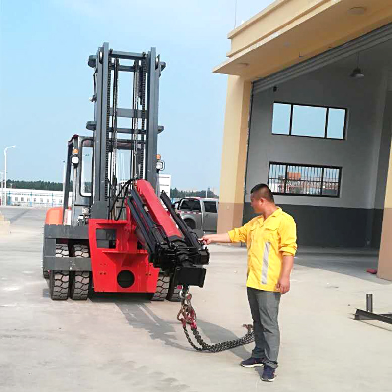 叉車(chē)飛臂吊可擺動(dòng)角度實(shí)現(xiàn)低空,高空取物。吊臂油缸驅(qū)動(dòng)伸縮實(shí)現(xiàn)設(shè)備貨物定位。